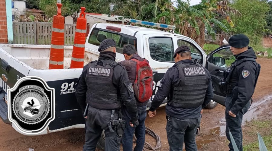 En el Barrio Ñu Porá de la localidad de Garupá, el Comando Radioeléctrico Fátima interceptó a un joven de 20 años que, tras escalar el muro de una ex fábrica de aberturas, había sustraído un rollo de cable. El sereno alertó a la Policía, que lo arrestó a los pocos metros con lo robado.