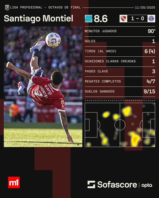 Con un golazo de Santiago Montiel de chilena, el equipo de Julio Vaccari avanzó de ronda y enfrentará al Xeneize en La Bombonera. Independiente dio un paso importante en su ilusión por el título del Torneo Apertura 2025. En el estadio Libertadores de América-Ricardo Enrique Bochini, el equipo de Julio Vaccari superó 1 a 0 a Independiente Rivadavia de Mendoza y se clasificó a los cuartos de final, donde lo espera un cruce de alto voltaje ante Boca.