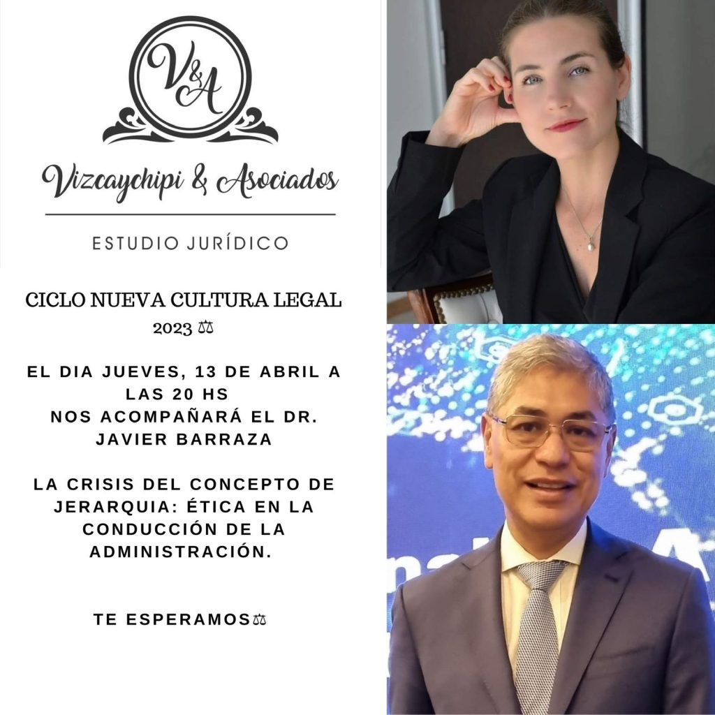 Invitan a Reflexionar en el Ciclo de Nueva Cultura Legal, será a través de la Plataforma de Instagram – @estudiovizcaychipi – con la coordinación de la Abogada y Escribana. Dra. María Elena Vizcaychipi, sobre la Crisis del Concepto de Jerarquía, Ética en la Conducción de la Administración junto al Dr. Javier Barraza.